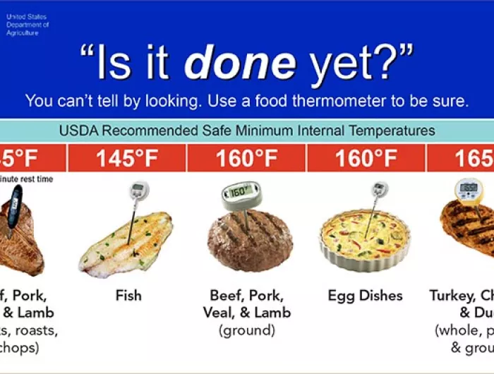 “Get a tip-sensitive digital thermometer that can tell you the temperature of cooked meat almost instantly,” says Donald Schaffner, an extension specialist in food science and a professor in the School of Environmental and Biological Sciences at Rutgers University. “It’s a small price to pay to keep you and your family safe, because you can’t always tell by looking whether meat or poultry has been cooked to a safe temperature.”