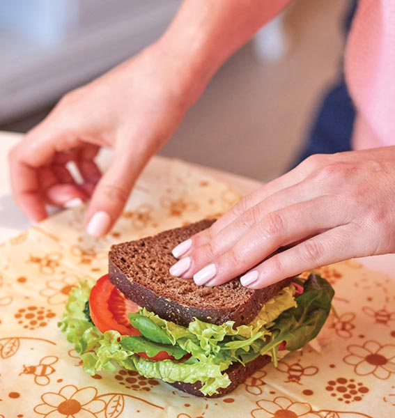 - Beeswax wraps can replace plastic wrap or bags.