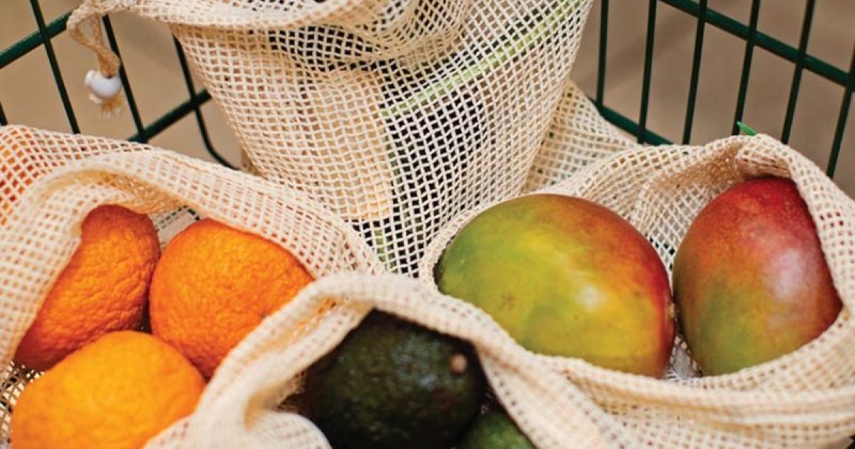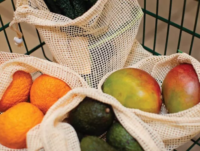 - Consider reusable grocery and produce bags. Many are made of polyester or other synthetic fabrics, so look for bags made from natural fibers like cotton or hemp.
